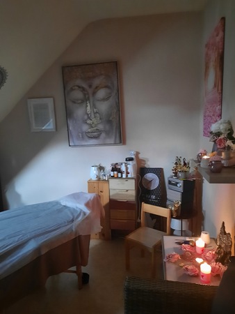 In diskretem Ambiente ist alles da um eine entspannende Massage erlegen zu können.